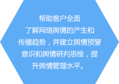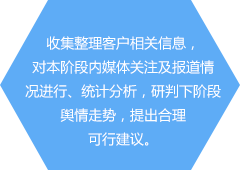 • 輿情不是簡(jiǎn)單的監(jiān)測(cè)和跟蹤,更應(yīng)是基于客戶(hù)背景和需求,整合其在所在領(lǐng)域相關(guān)信息,為客戶(hù)提供專(zhuān)業(yè)輔助支持。中新輿情依托自有優(yōu)勢(shì),率先在行業(yè)內(nèi)衍生、深化輿情服務(wù),通過(guò)聘請(qǐng)、挖掘各類(lèi)專(zhuān)家智庫(kù)資源,形成智庫(kù)外腦團(tuán)隊(duì),結(jié)合中心決策支持系統(tǒng)的技術(shù)優(yōu)勢(shì),打造大數(shù)據(jù)時(shí)代的新型智庫(kù)資源。